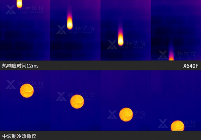 热像仪的帧率,指的是热像仪每秒钟能够捕捉并拍摄输出的热图像数量,是衡量热像仪动态捕捉能力与热图像采集速度的关键指标,也是高速运动目标物或瞬态温度捕捉场景下的必备条件例如爆炸、快速化学反应、机械部件高速摩擦等场景。目前常规工业级热像仪帧率集中在25-50Hz,科研级高端热像仪帧率大多局限于1000Hz以内。格物优信科研团队打造的中波制冷型热像仪,通过系统升级与算法革新,测温帧率提升至2000Hz,意味着设备每秒可完成2000Hz热图像的采集与处理,能够精准捕捉到毫秒级的气温变化,在高温目标探测、精准测温等高要求条件下具有非常明显的优势,成为了格物优信旗下产品的核心竞争力之一,适用于科学研究、工业测量、红外特征分析等领域,可实现对高速运动或瞬态变化过程进行清晰成像和精准测温。